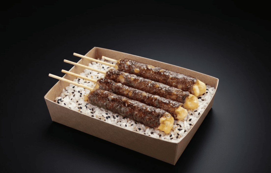 Brochettes de bœuf tendre mariné et grillé, généreusement garnies de fromage fondant. La viande juteuse et savoureuse se marie parfaitement avec le fromage crémeux, le tout légèrement caramélisé pour une texture irrésistible, servie avec une sauce d'accompagnement.