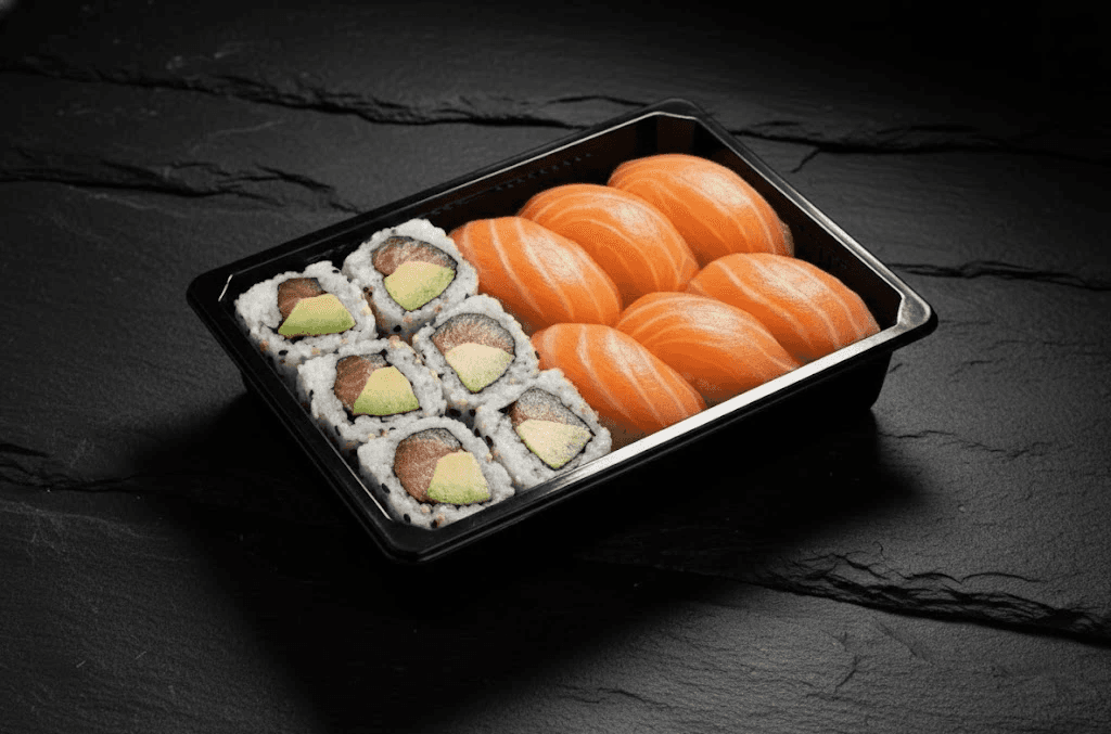 5 Sushis SAUMON, 5 Sushis THON, 6 Maki THON, 4 Roll and Cheese, 6 Maki SAUMON, 8 California SAUMON/Avocat, 6 Spring Roll SAUMON/Avocat