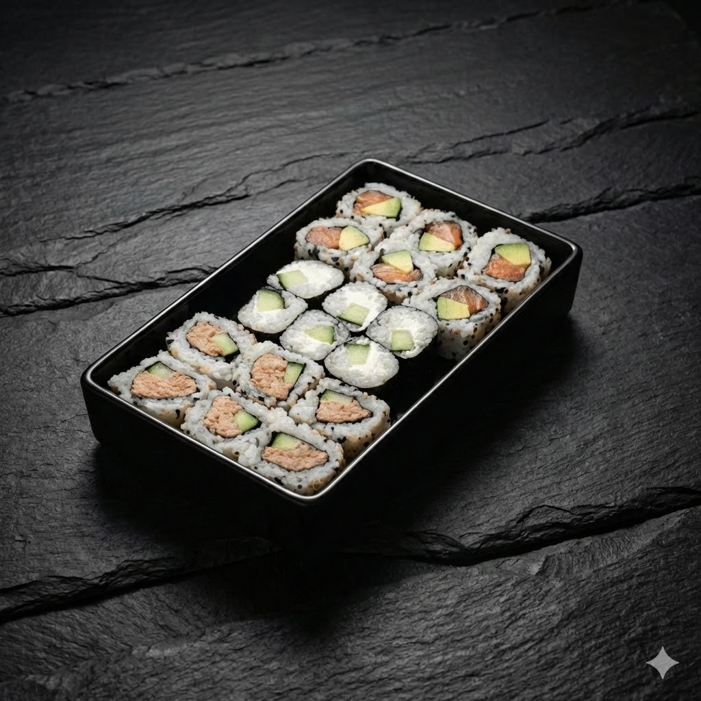 8 California SAUMON/avocat 8 California THON mayo/avocat 6 Maki avocat 6 Maki concombre 6 Maki THON 6 Maki SAUMON 6 Roll SAUMON cheese